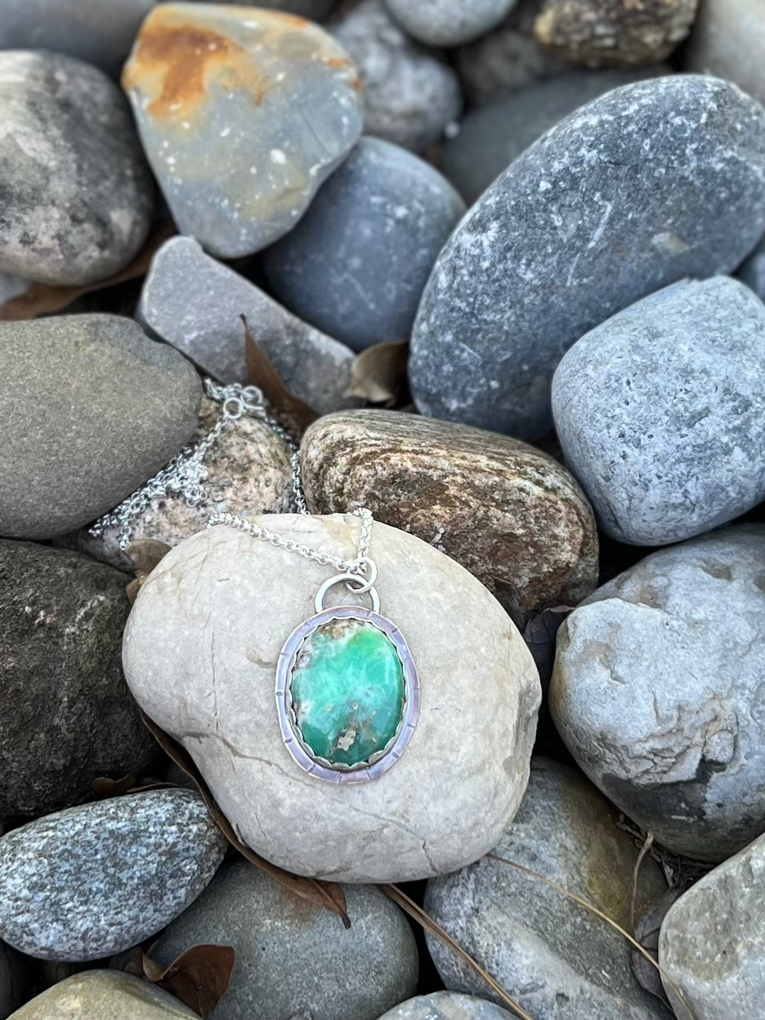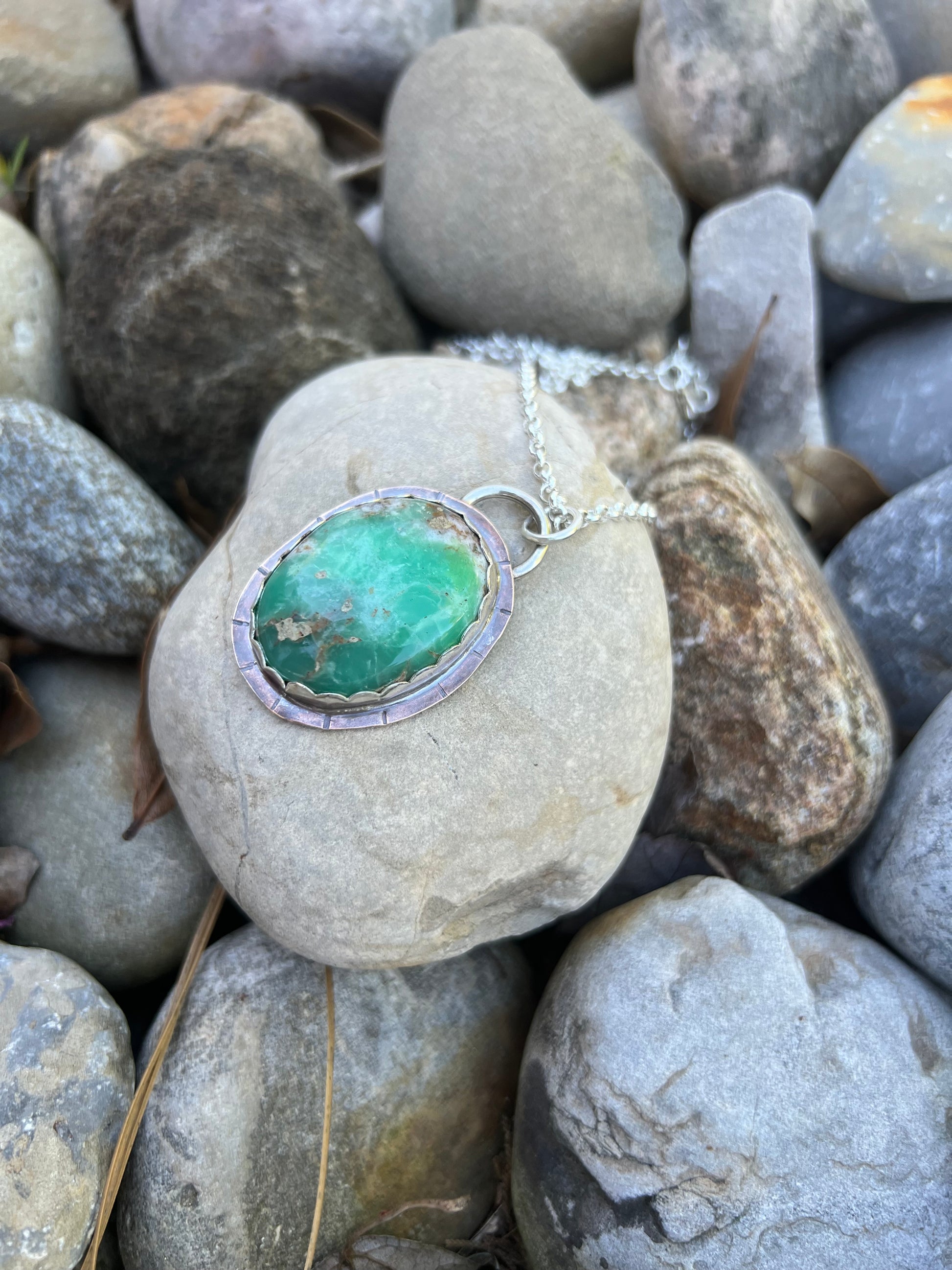 Chrysoprase set in copper and sterling silver
