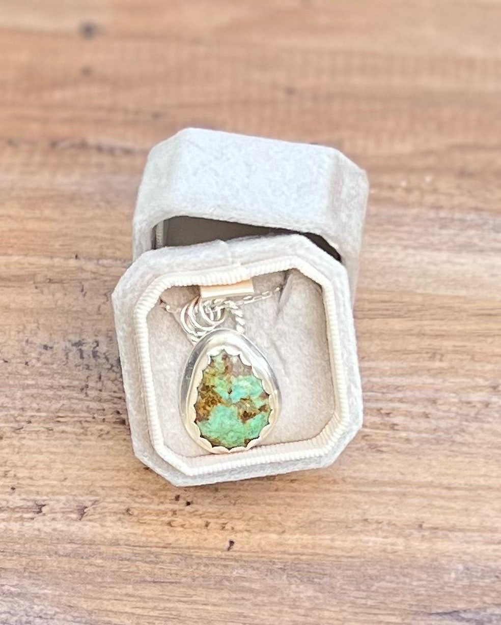 Turquoise set in fine silver and sterling silver on 18" sterling chain
